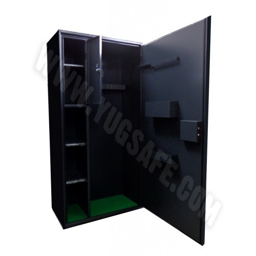 Оружейный сейф серии GL это бюджетное решение проблемы хранения оружия. Многие производители пошли в этом вопросе по пути максимального удешевления продукции, но не ТМ Hunter. В этих сейфах сочетаются безупречное качество умеренная надежность и максимальное удобство. Размер сейфа позволяет удобно установить его в любой шкаф или гардероб, надежность обеспечивает сейфовый замок, а так же фирменный «зацеп» двери и корпуса петля сплошная внутренняя на всю дверь тоже добавляет надежности. Замки в этой серии используются двух типов ключевой китайский или электронный кодовый Griffon. Внутри в сейфах имеются либо полка, либо шкатулка, а так же лоток для ветоши или масленки, держатель шомпола. Порошковая окраска обеспечивает долговечность эксплуатации изделия. Крепежные отверстия находятся на задней стенке сейфа (так что приклад об болт в полу вы не поцарапаете), но из-за небольшой толщины металла, их можно без проблем сделать в любом месте сейфа. Крепить эти сейфы обязательно, так как из за небольшого веса и небольшой глубины 26 см, они не очень устойчивы. Сейфы серии GL - сейфы достойного качества.