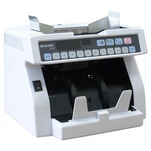 Счетчик банкнот Magner 35S предназначен для пересчета банкнот различных валют. Magner 35S уже более 10 лет является одной из наиболее популярных моделей счетчиков банкнот по продажам в Украине и странах СНГ. Привлекательная цена и простота управления выгодно отличают данную модель. В счетчике банкнот Magner 35S используются металлические шасси, что обеспечивает его высокую надежность при обработке любой массы наличности.
