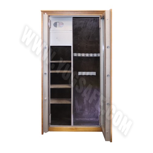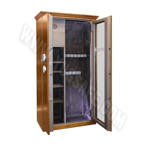 Оружейный сейф ПАРИТЕТ-К GE.700.E WOOD с бронированным стеклом отделан деревом( дуб, цвет натуральное дерево). Для придания сейфу премиальности, он так же оснащен внутренней подсветкой, а внутренние стенки отделаны флоком. Конструкция двери сделана специальным образом, так называемый "зацеп" не позволяет открыть сейф ломом или монтировкой. Так же на сейфе установлены специальные петли "антисрез". Дополняет все это броне пластина от высверливания и выбивания замков и вращающиеся ригеля. Внутри сейфа вы найдете удобные съемные полки, держатели для шомполов, ложемент для стволов с изменяемым местом установки (для любой высоты ружья до 1450 мм), а так же удобную конструкцию дверей которая позволяет использовать все пространство сейфа без ограничений. Сейф оружейный GG.700.E WOOD это отличный выбор для тех кто предпочитает кроме надежности оружейного сейфа еще и отличный внешний вид.