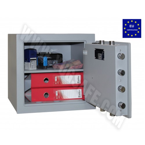 Сейф CLE.I. это экспортный вариант сейфов первого класса взломоустойчивости TM Griffon. Сейфы сертифицированы на первый класс взломостойкости по общеевропейскому стандарту ECB-S в Италии. Сейф оснащен двухслойным сендвич-корпусом (два листа металла, между ними бетон не ниже 400й марки с добавками, которые увеличивают его прочность) Дверь 10 мм толщины. Устанавливается два типа замков электронный кодовый замок фирмы M-LOKS (Нидерланды) или ключевой замок STUV (Германия). Все замки сертифицированы в Европе. Даже самая маленькая модель имеет семь вращающихся ригелей диаметром 25мм., которые выходят на три стороны. Внутренние петли обеспечивают отсутствие прямого доступа к ним. Внутри сейфа мы можем найти съемную полку или внутреннюю шкатулку, в зависимости от размера. Обязательный атрибут взломостойкого сейфа возможность крепления его к полу, в этих сейфах, так же предусмотрены отверстия для крепежа к задней стене. За все это в Европе Вы бы выложили кругленькую сумму, а тут у Вас есть возможность получить европейское качество по Украинским ценам. Купить сейф CLE.I. вы можете оформив заказ в нашем интернет магазине. Мы выполним его в кратчайшие сроки.