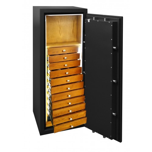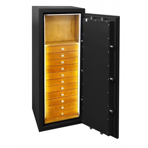 Сейф огне-взломостойкий 5-го класса Griffon CL.V.150.K.E JEWELRY Главной особенностью этого сейфа является наличие двух электронных замков. Сейфы 5го класса это наиболее надежная защита ваших ценностей от взлома. Даже в некоторых отделениях банков нет сейфов такого уровня. Единственный недостаток(преимущество) этих типов сейфов это их вес, не всегда есть техническая возможность установить сейф на то место где хотелось бы. В дополнение к надежности от взлома сейф так же сертифицирован на сопротивление огню класс 30Р. А еще он имеет очень интересный дизайн. Купить сейф Паритет-к CL.V.100.K.E JEWELRY вы можете в нашем магазине в Одессе, Херсоне.